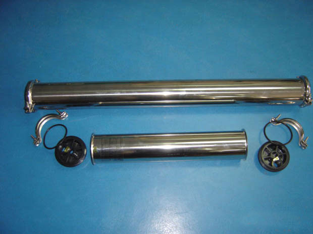 產品簡述: 反滲透膜殼是反滲透、納濾、超濾等裝置的配套產品,外殼采用304無縫不銹鋼鋼管制造,內桶件為不銹鋼、ABS增強工程塑料,NBR橡膠O型閥。耐壓力:3MPa,適用溫度:0℃-
