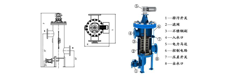 【刷式過濾器DLD-NY】 單臺處理水量:45-2350m/h 最大工作壓力:0.1-1.6Mpa 過濾器清潔時的壓力損失:0.018Mpa 最高工作水溫:95℃ , 過濾精度范圍:100-3000m 自清洗所需水量:1% 自清洗時間: