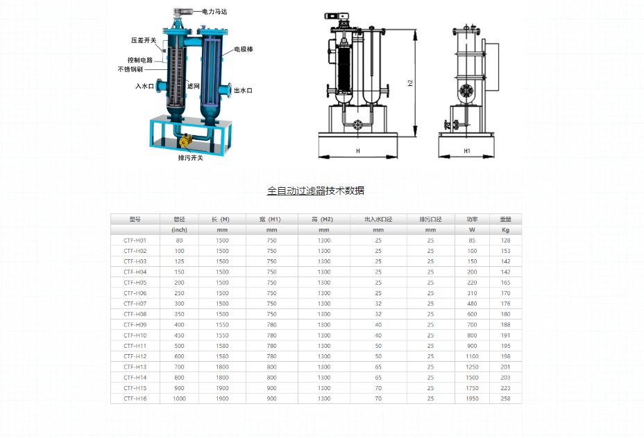 單臺處理水量:45-800m/h 最大工作壓力:0.1-1.6Mpa 過濾器清潔時的壓力損失:0.018Mpa 最高工作水溫:95℃ , 過濾精度范圍:10-2000m 自清洗所需水量:1% , 自清洗時間:10-60秒 自清洗控制方式